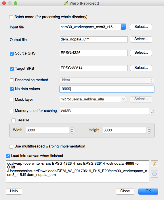 Cambio de proyección del modelo digital de elevaciones a UTM.