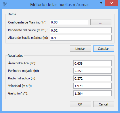 - Cálculo del escurrimiento máximo. Se puede utilizar el Método racional o el Método de la Huella Máxima.