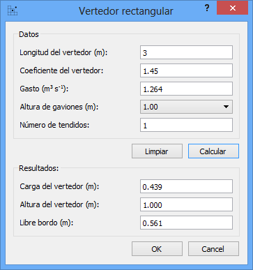 - Diseño del vertedos. Para asegurar el funcionamiento de la presa se diseña un vertedor rectangular de cresta gruesa con la capacidad de desalojar el escurrimiento máximo.